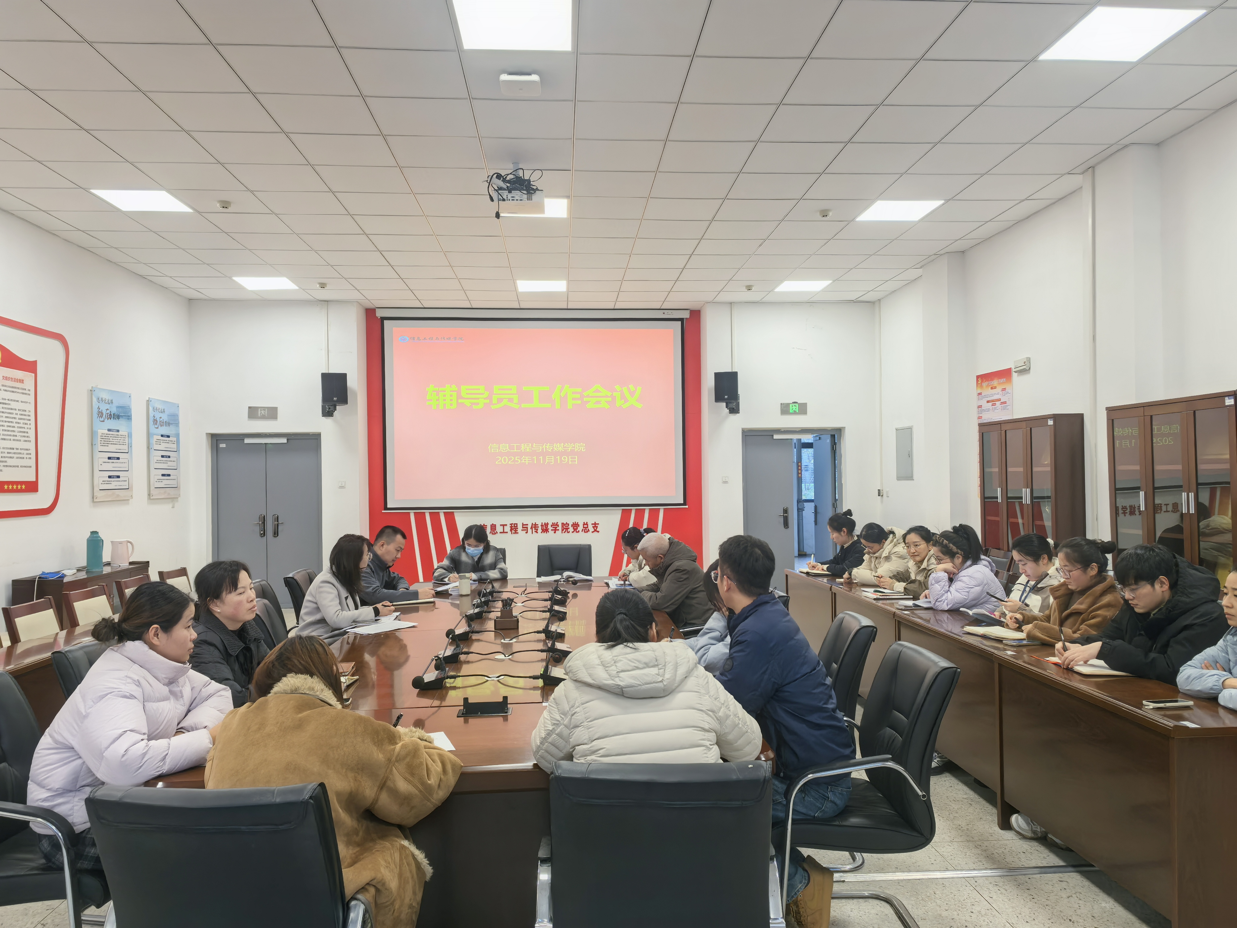 为进一步做好学院学生教育和管理工作,贯彻落实学校学生工作要求,切实提升辅导员育人能力,11 月 19 日下午,信息工程与传媒学院在信息楼一楼会议室召开期中辅导员工作会议,会议由学院党总支副书记江寅昌主持。