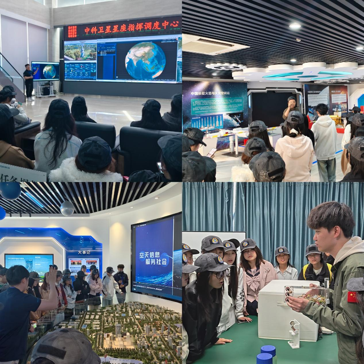 活动现场,师生一行在基地讲解员的引导下,先后参观了空天信息展厅、卫星调度指挥中心与航天科普体验区。在空天信息展厅,从“东方红一号”的历史性突破到新一代遥感卫星的技术跨越,从卫星构造原理到空天信息技术在国土监测、生态保护、智慧城市等领域的前沿应用,图文展板与实物模型生动呈现了我国航天事业从无到有、从弱到强的奋进历程,让师生直观感受“大国重器”的硬核实力。