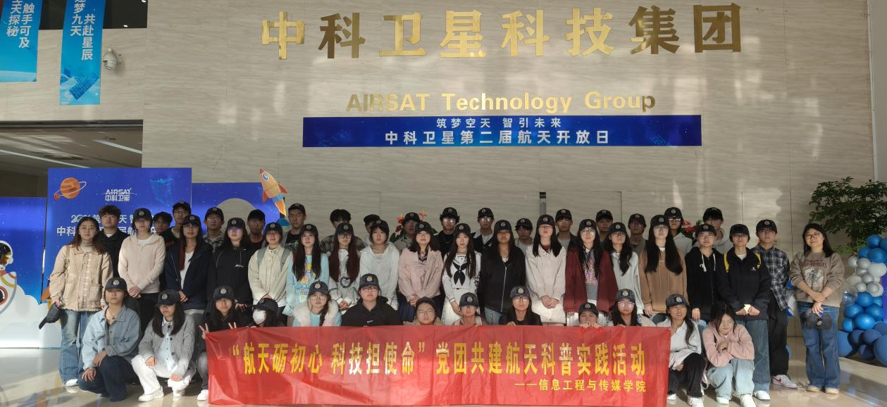 为深入学习贯彻党的二十大精神,弘扬“特别能吃苦、特别能战斗、特别能攻关、特别能奉献”的航天精神,深化“党建带团建、团建促育人”工作实效,厚植师生家国情怀与科学素养。在2026年4月24日第十一个中国航天日到来之际,信息工程与传媒学院组织党员教师、入党积极分子及学生骨干,前往中科卫星空天信息产业基地开展“航天砺初心 科技担使命”党团共建航天科普实践活动。