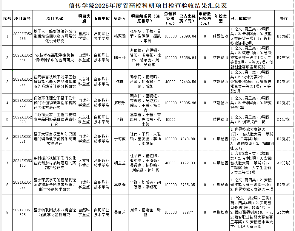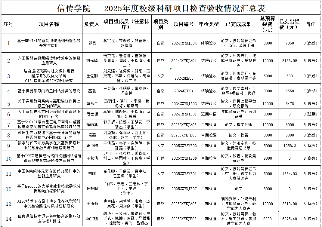 根据《关于开展我校2025年度省、校两级科学研究项目检查验收工作的通知》、《关于开展我院2025年度省、校两级科研项目检查验收工作的通知》的要求,经外审专家及学院学术分委员会的评审,现将我院2025年度省、校两级科学研究项目检查验收结果公示如下: