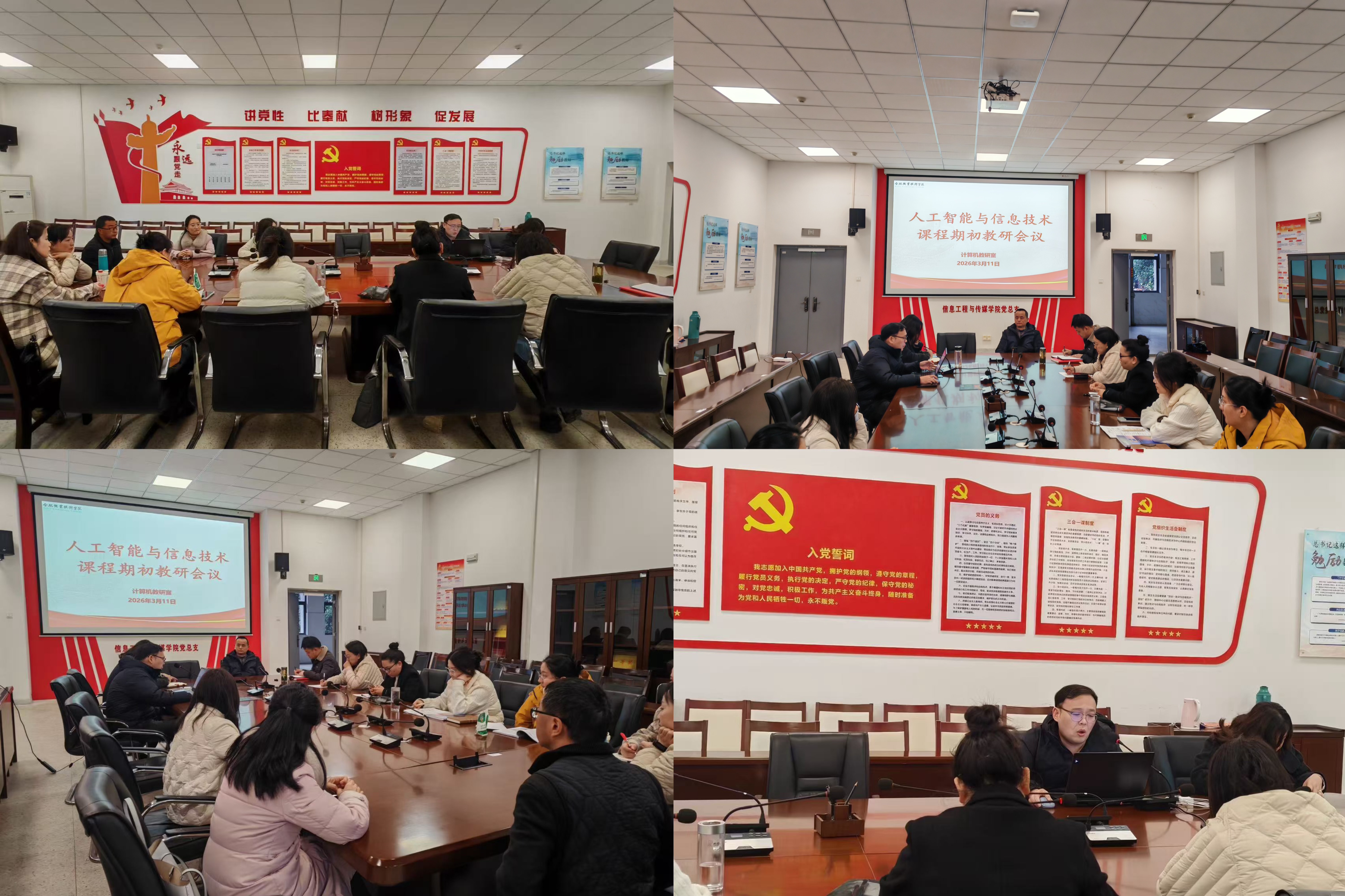 2026 年 3 月 11 日下午,计算机教研室于汇心湖校区信息楼一楼会议室,召开新学期全校人工智能通识课期初教研会议,24名授课教师线下及线上同时参会。会议由教研室主任钱春阳主持。