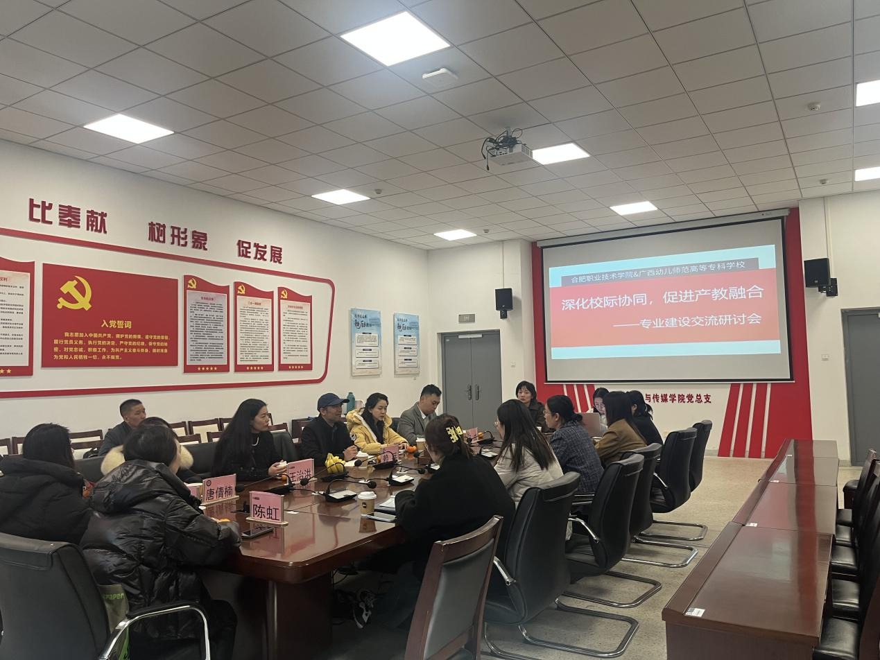 为深化校际合作,共谋产教融合新发展,2025年11月26日,广西幼儿师范高等专科学校一行莅临合肥职业技术学院信息工程与传媒学院进行调研交流。双方围绕数字媒体艺术设计专业虚拟现实方向的专业建设,共同举办了“深化校际协同,促进产教融合——专业建设交流研讨会”。本次交流旨在分享办学经验,探索人才培养新模式,共同推动职业教育高质量发展。