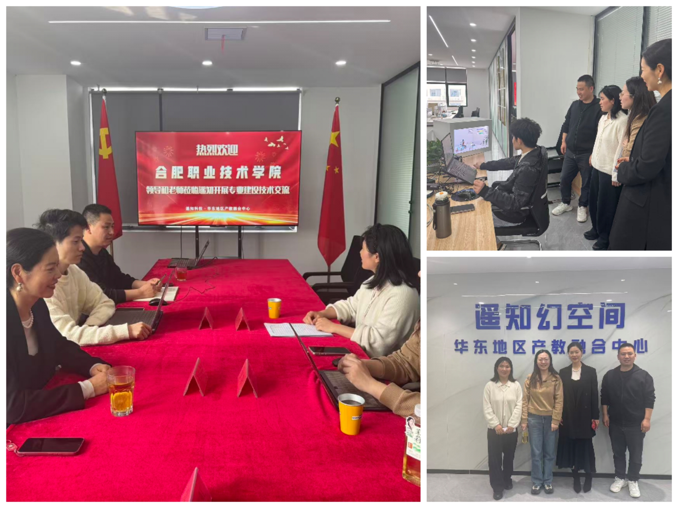 2026 年 4 月 1 日下午,合肥职业技术学院信息工程与传媒学院数字媒体艺术设计专业教师骆阳、陈玉环前往合肥遥知幻空间科技有限公司开展访企拓岗活动,双方围绕 25 级数字媒体艺术设计专业双导师教学与专业未来发展方向展开深度交流。